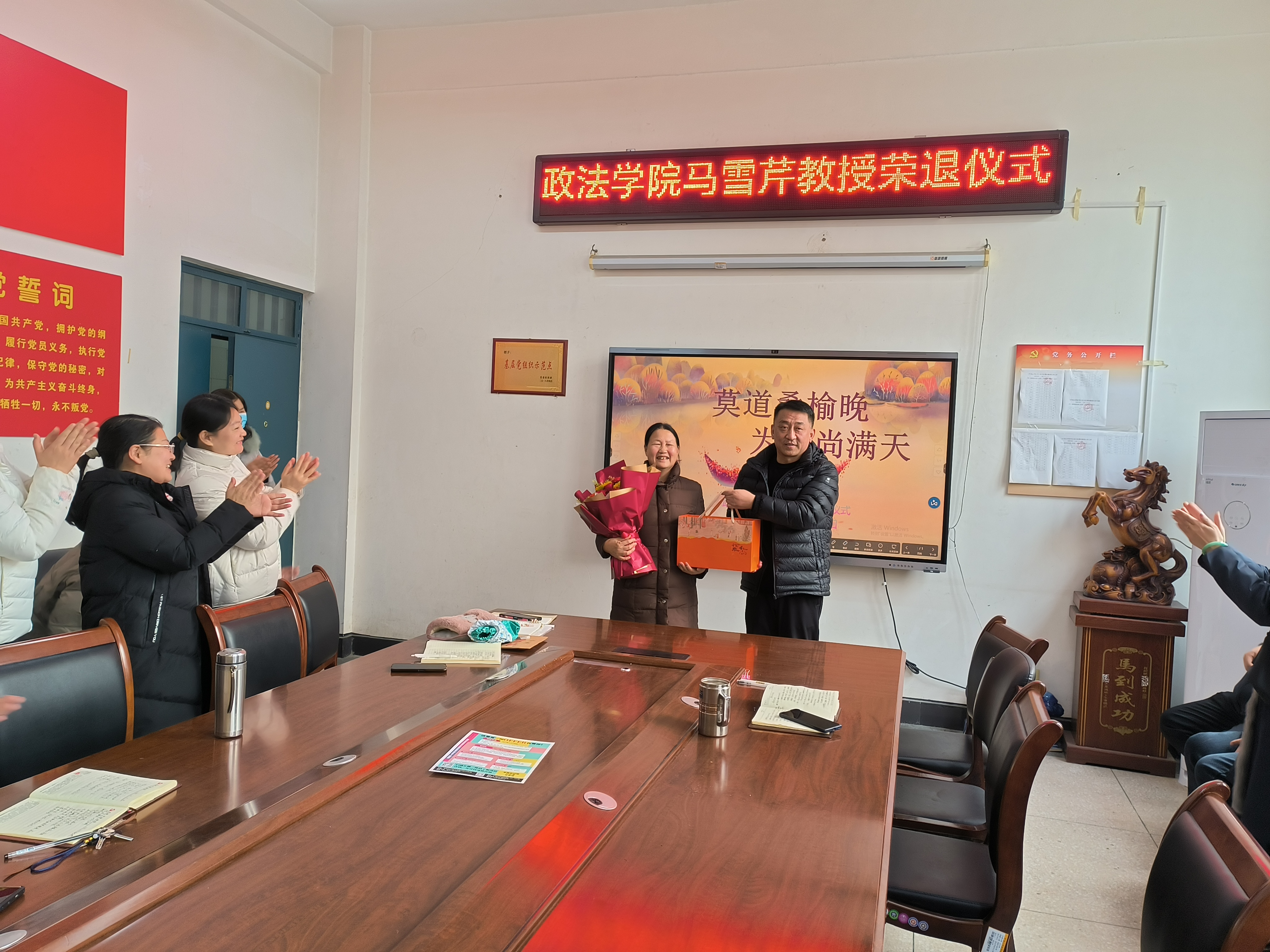 简朴而隆重的仪式,是对马教授工作的充分肯定,也是对在职教师的一种激励。鼓励青年教师要学习她执着事业、爱岗敬业、乐于奉献、活到老学到老的精神,在三尺讲台上刻苦钻研,勤恳育人,最后,大家纷纷祝愿马教授退休后继续保持乐观的心态和积极的生活态度,为自己的退休生活书写别样的精彩。退休仪式不仅仅是表达诚挚的敬意,更是传递和鞭笞着政太阳集团网站8722全体教师脚踏实地、薪火相传、锐意进取,也激励着全体教师为tyc8722太阳集团未来的发展奉献青春和力量。