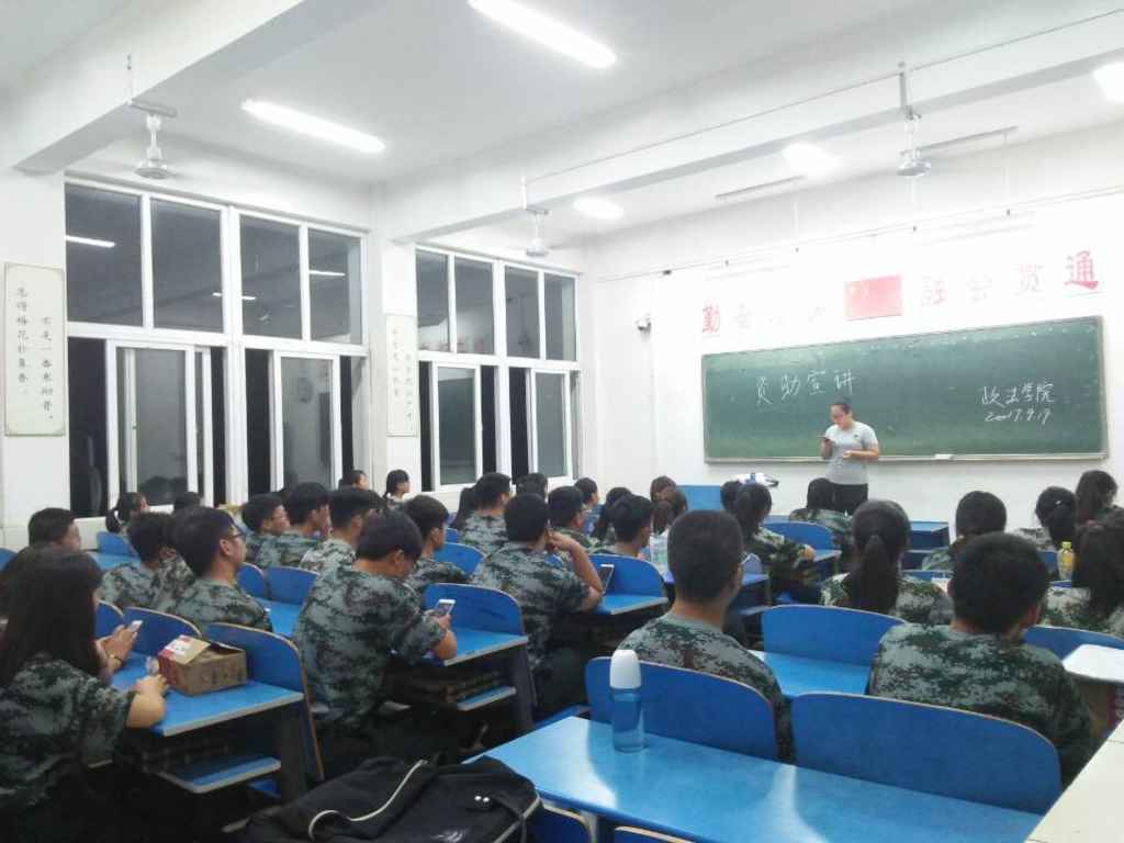 会上,院系资助工作的学生干部向同学们介绍了学校近期资助工作的安排,并对国家奖学金、国家励志奖学金、国家助学金、国家助学贷款(包括校园地国家助学贷款和生源地信用助学贷款)、高校大学生义务服兵役学费补偿贷款代偿、直接招收士官学费补偿贷款代偿及退役士兵资助、新生入学资助项目、勤工助学、学费减免等多种形式的高校家庭经济困难学生资助政策体系进行了详细讲解,帮助新生理解和认识党、国家和学校各项资助政策。