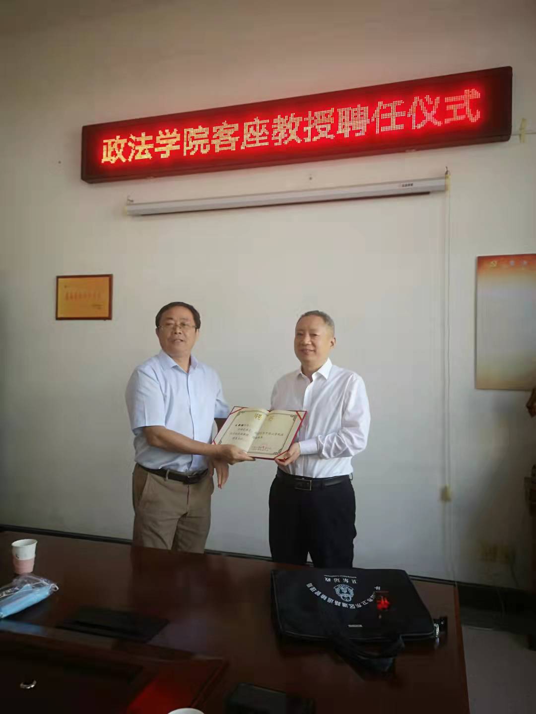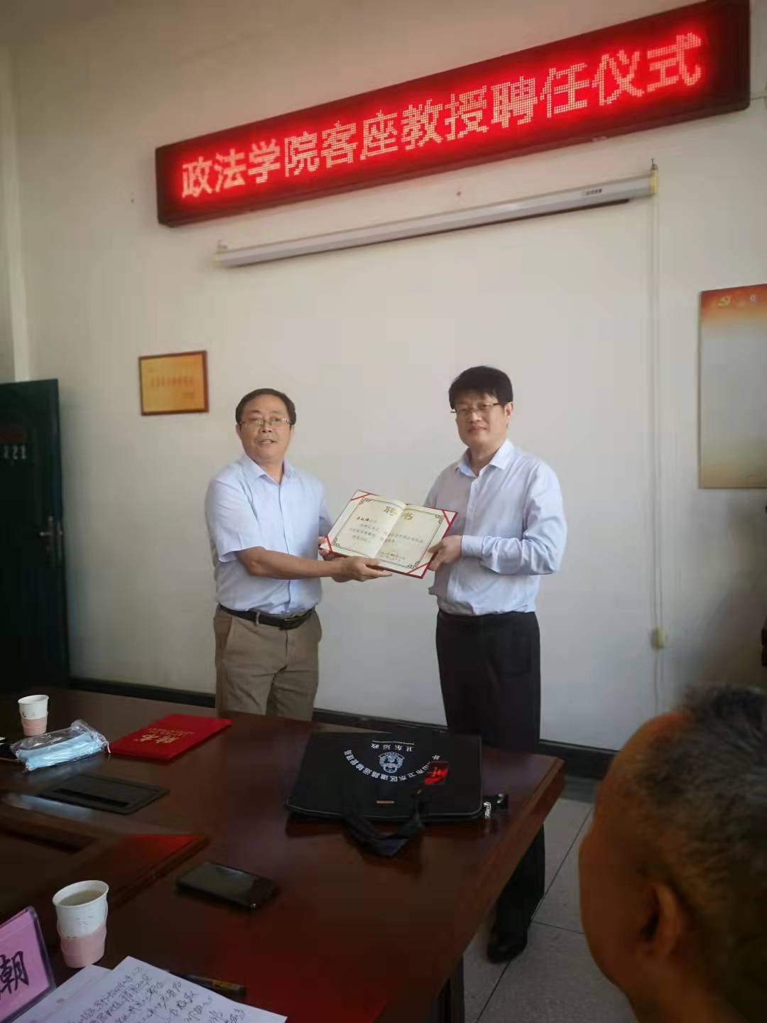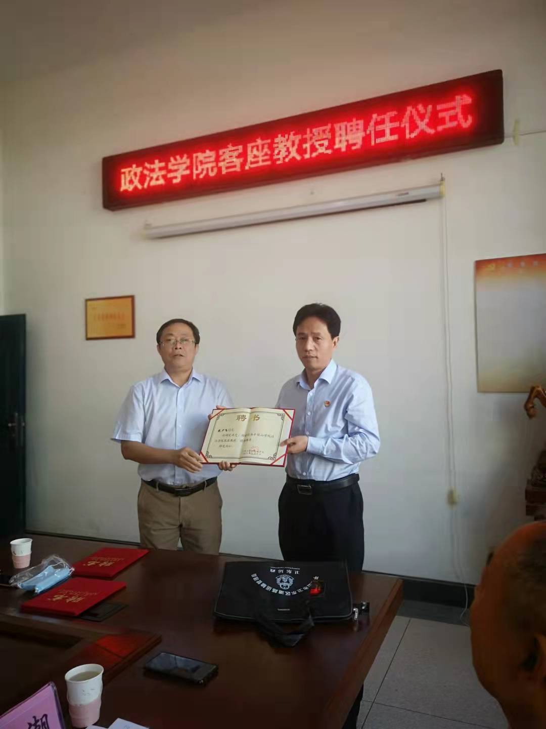 副校长于长立为三位客座教授颁发了聘任证书。在随后的讲话中,于长立副校长指出,今天受聘的三位客座教授既有较高的理论水平,又有丰富的地方行政工作经验,是市内具有较大影响力的学者型领导干部,也是我校转型发展和应用型人才培养急需的高层次专家型人才。政太阳集团网站8722要充分发挥他们专业、社会资源、法律实务等方面的优势,注重科学理论和具体实践相结合,在学科建设、人才培养、科学研究、社会服务等方面加大专家、学者参与力度,科学谋划、开拓创新,推动院系各项事业又好又快发展。
