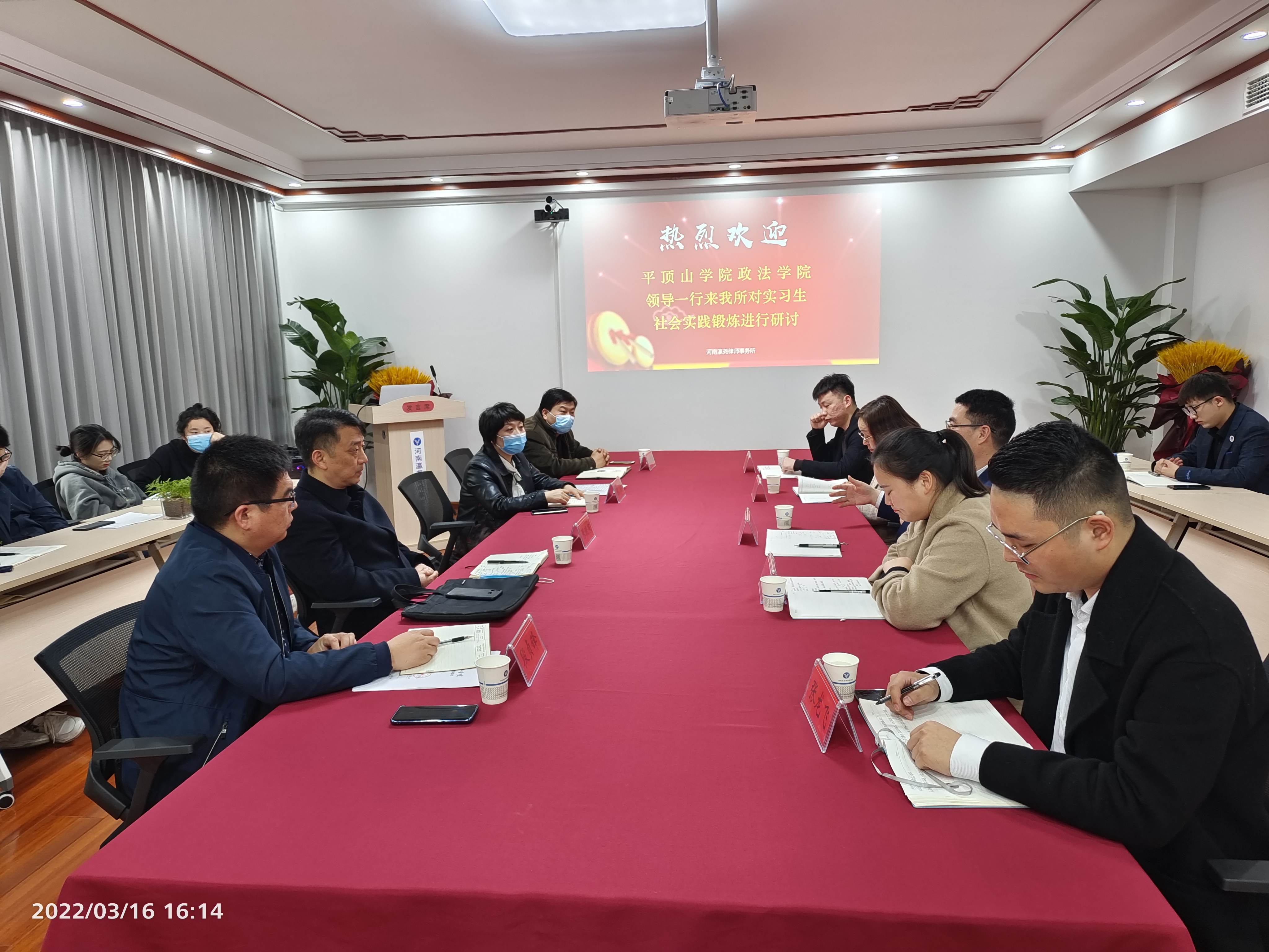 为进一步推动院系转型发展,提升办学质量,3月16日下午,我院党委书记张琳、院长张晓东、副院长段贞锋和马君昭一行四人到河南瀛尧律师事务所,对我院实习学生进行走访慰问,并就与律所建立长期实践教学基地和就业基地事宜进行沟通交流。