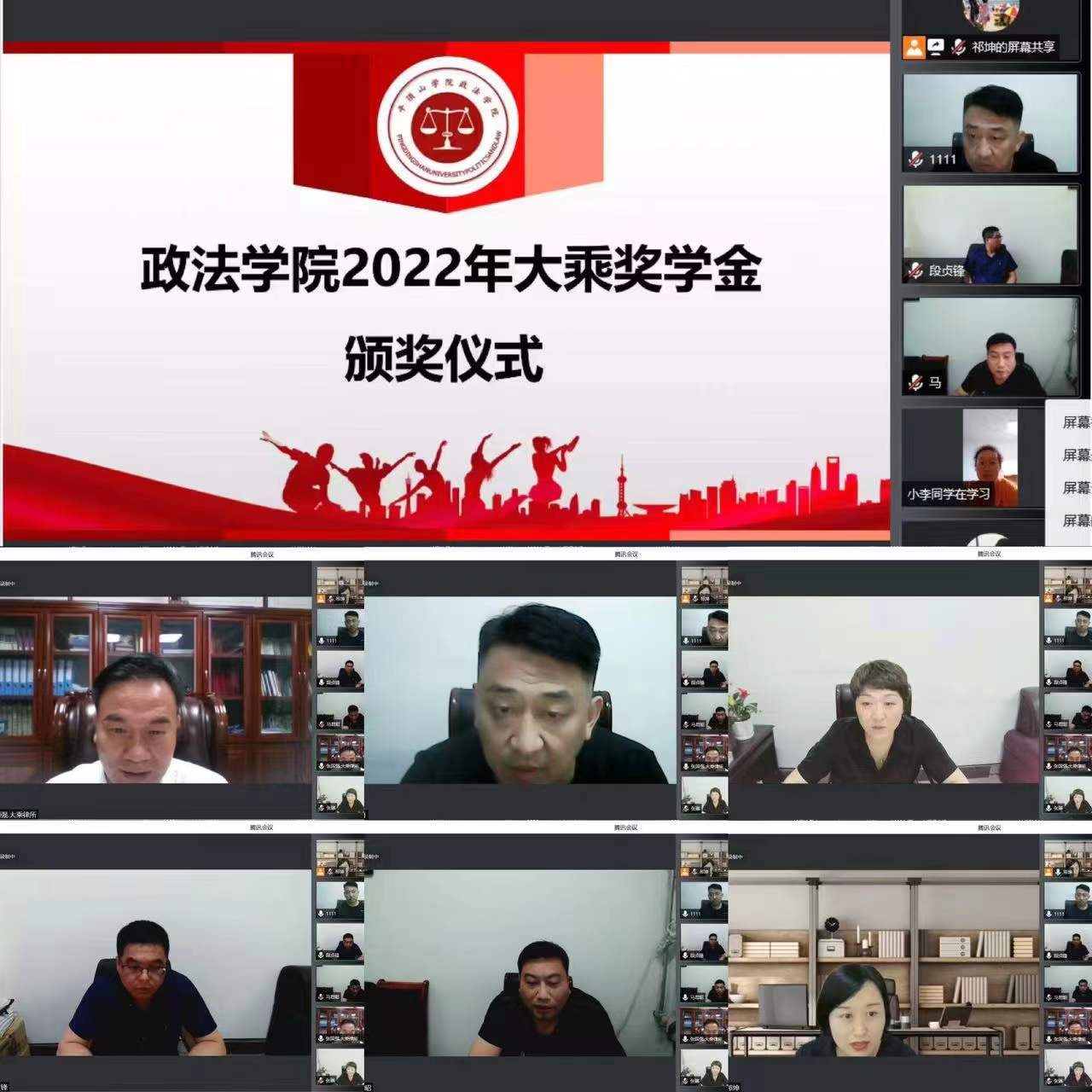 6月6日晚上19点30分,政太阳集团网站8722首届“大乘奖学金”颁发仪式通过线上会议形式举行。“大乘奖学金”设立人、河南大乘律师事务所主任张国强,政太阳集团网站8722党政班子成员、教师代表及获奖学生代表参加会议,会议由政太阳集团网站8722副院长段贞锋主持。