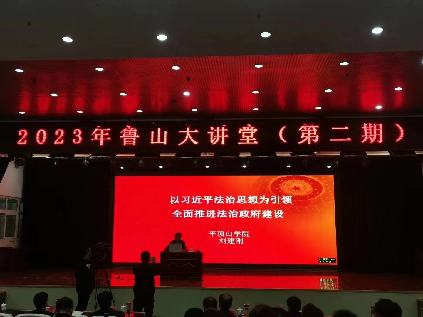 3月3日,由鲁山县委组织部、县委宣传部、县委全面依法治县委员会办公室联合举办的第二期“鲁山大讲堂”在鲁山县文化中心小礼堂开讲。我院刘建刚博士应邀作《以习近平法治思想为引领 全面推进法治政府建设》为主题的学术讲座。活动由鲁山县副县长、县公安局局长王治帮主持。县委班子领导、各部委常务副职、县直单位主要负责同志,各乡(镇、街道)党政正职及各企事业单位主要负责人、县宣讲团成员等200余人到场聆听讲座。