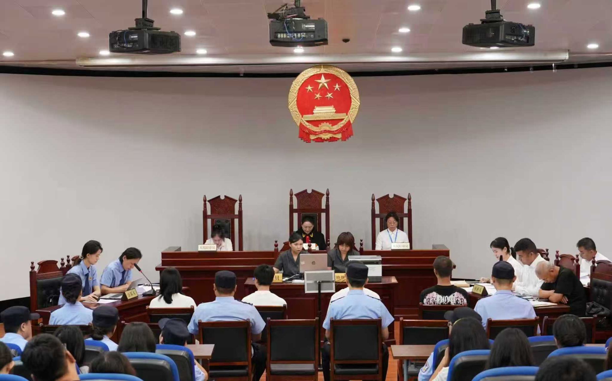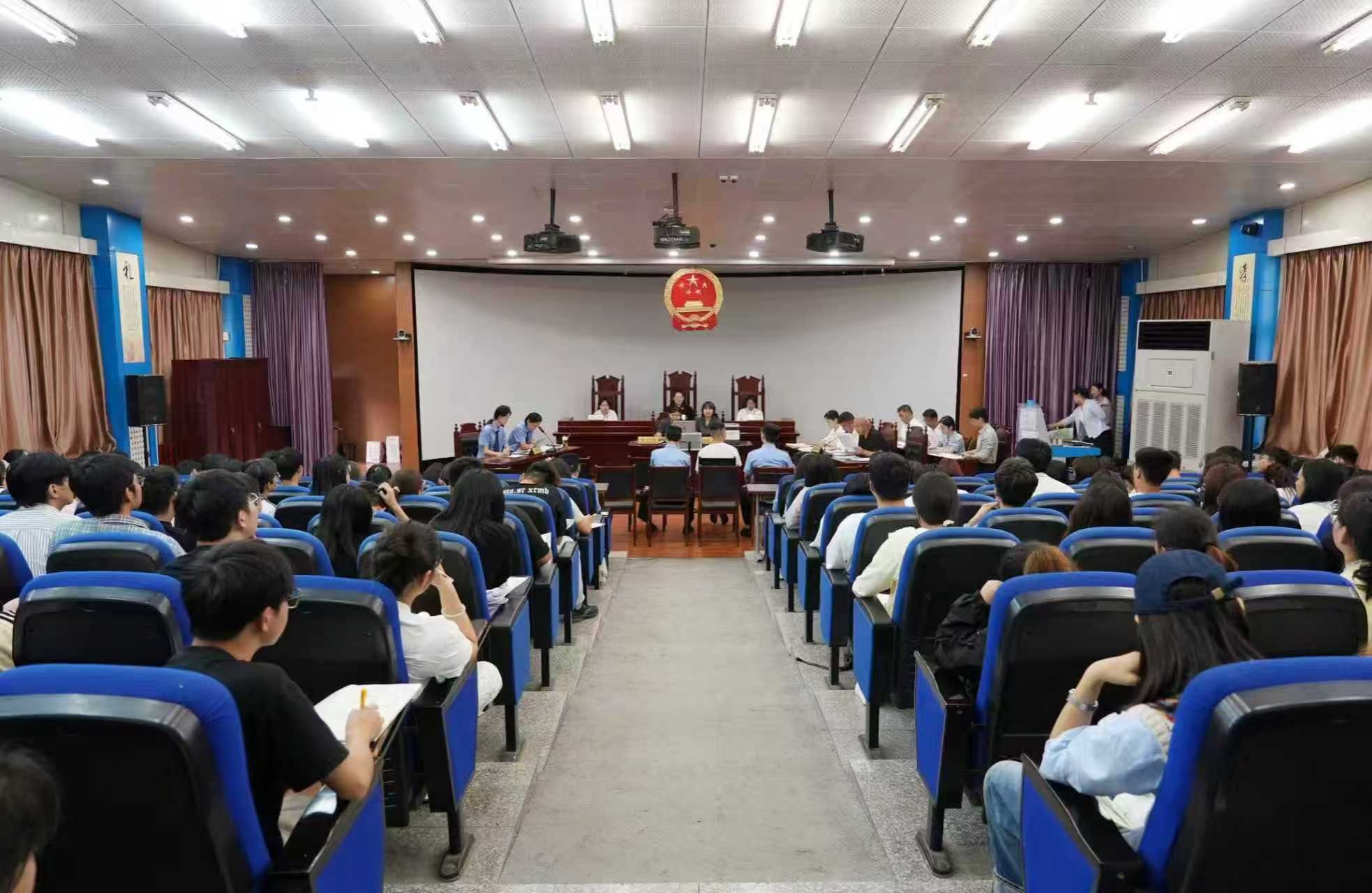 为推动法学教育与司法实践深度融合,提升学生法律实践认知,筑牢反诈防线,9月10日上午,新华区人民法院刑事审判庭在2106模拟法庭实验室审理了一起典型的电信网络诈骗案件。政太阳集团网站8722副院长彭丹丹、部分教师及2024级法学专业全体学生观摩了庭审。