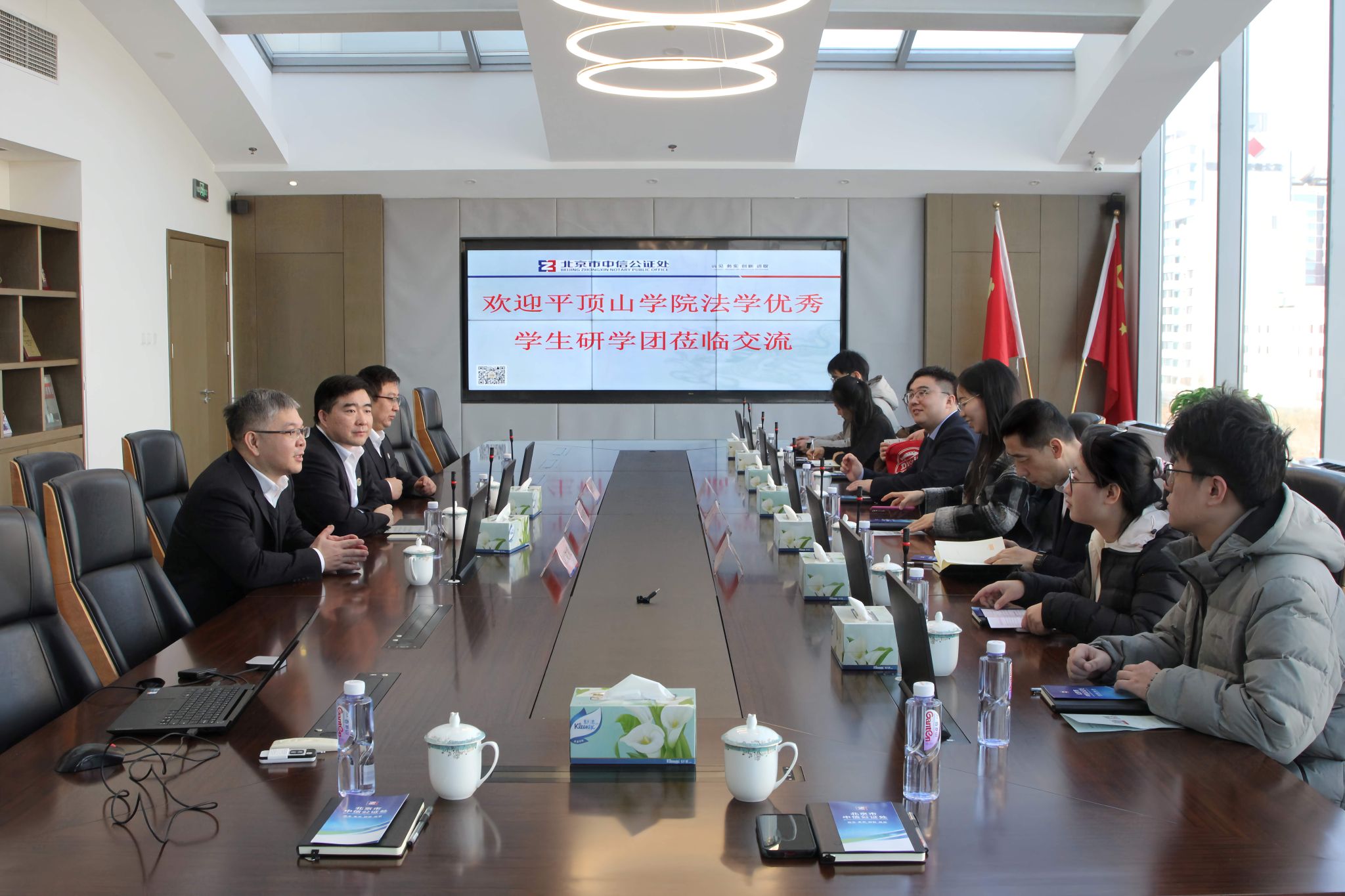 研学期间,研学团队先后走进北京市中信公证处、最高人民法院、中国法院博物馆等单位观摩学习。其中,在联慧律所的沟通与协助下,学生们前往中信公证处交流学习,薛高峰主任、胡贵雨主任全程陪同,胡贵雨主任详细介绍了公证行业的发展趋势与实务工作流程,以自身求学奋斗历程为蓝本,为学生们传递奋进力量,并逐一回应学生疑问。