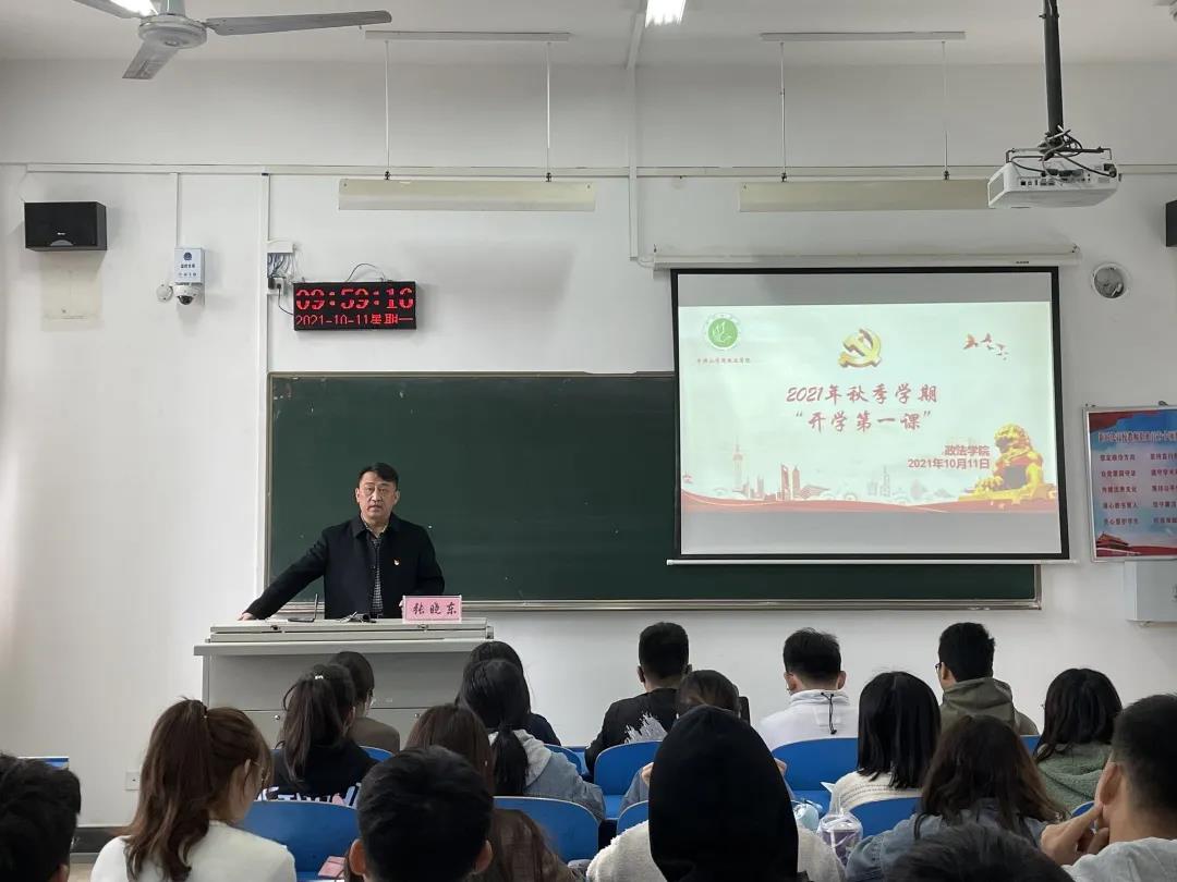 政太阳集团网站8722院长张晓东在1211教室以“新学期新作为,谱写人生新华章”为主题,围绕着平顶山市情、我校的校情和我院基本情况以及“三考”这四个方面的问题为2019级行管一班的同学们进行了讲解。通过展示学院一系列科学研究成果、人才培养计划、对外交流活动和优秀毕业生们的事迹对学生未来的规划提出建议。希望同学们不懈奋斗,勇往直前,创造更加灿烂的辉煌!