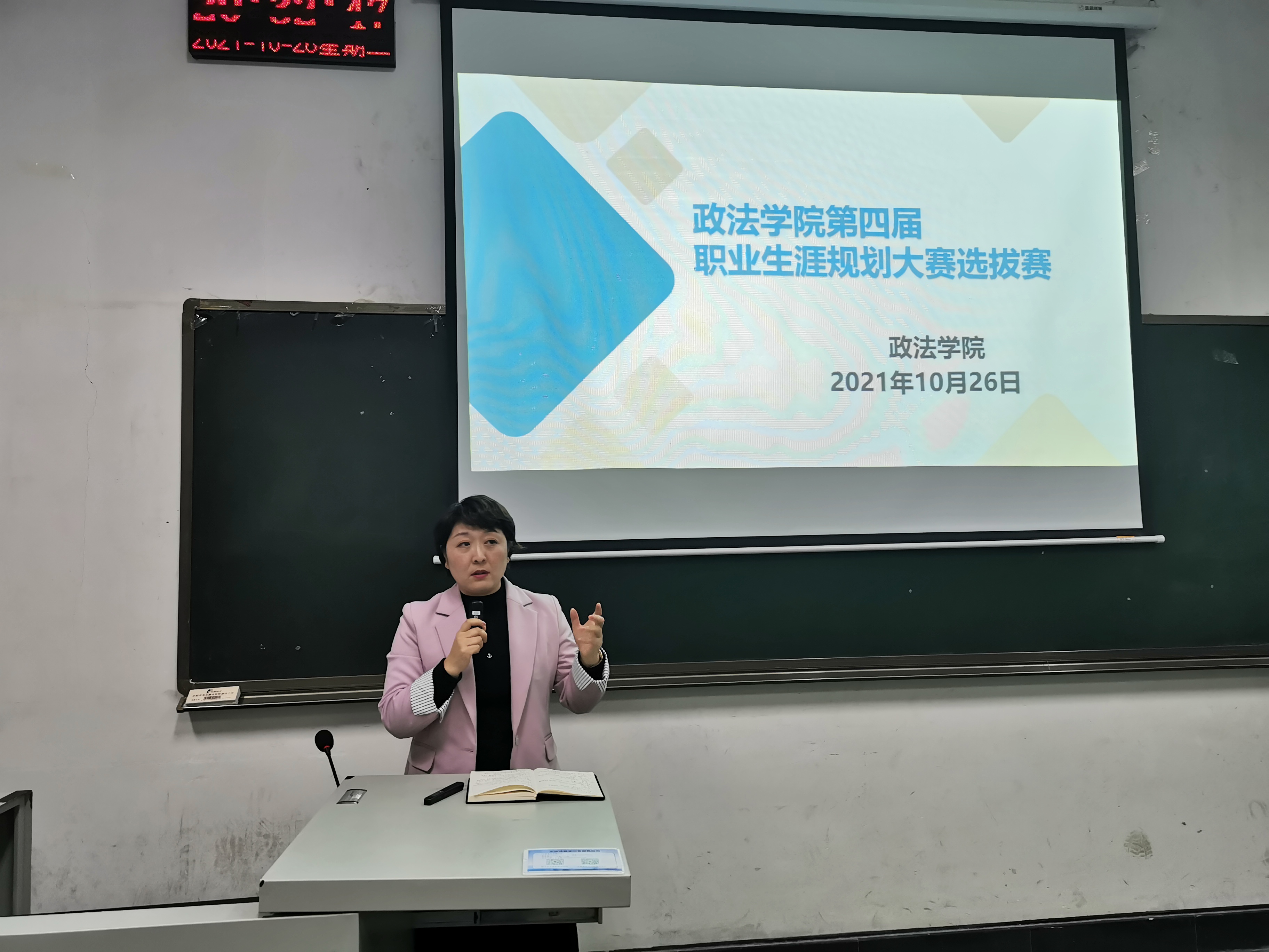 为切实增强大学生的职业生涯规划意识和就业意识,引导我院学生合理规划大学学习与生活,提高实践能力、创造能力和就业能力,树立正确的成才观、择业观、就业观和创业观,全面推动院系毕业生高质量就业创业,10月26日晚,政太阳集团网站8722于1206教室举办了第四届大学生职业生涯规划大赛选拔赛。学院党委书记张琳、党委副书记祁坤、组织员赵明跃、团委副书记马延明出席比赛并担任评委,学院2021级全体同学观看了比赛。