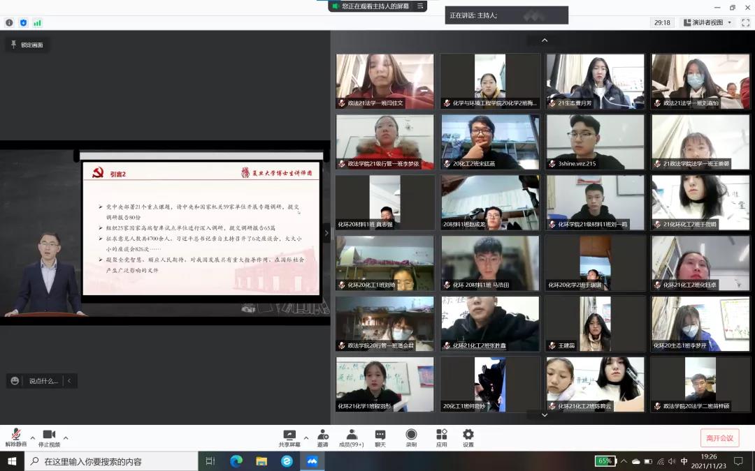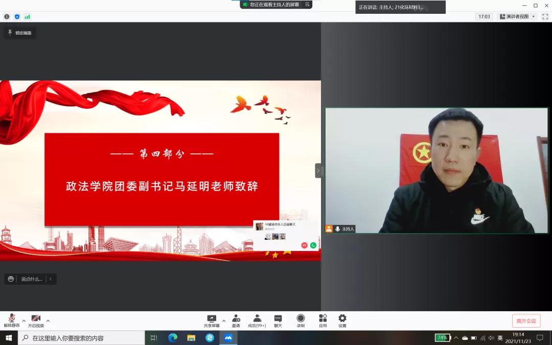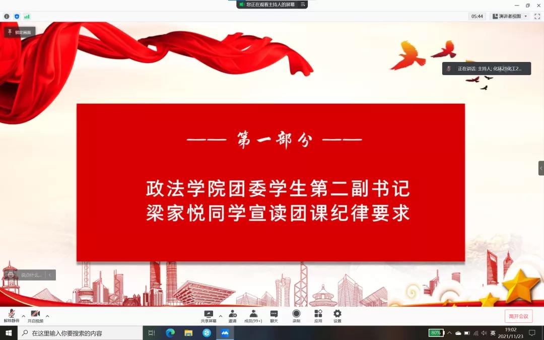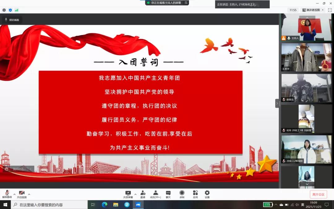 为进一步学习团史团章理论知识、习近平新时代中国特色社会主义思想、党的十九大精神和“四史”知识,2021年11月23日,政太阳集团网站8722和化学与环境工程学院通过线上形式联合开展了以“百年芳华铭初心,青春笃行强国梦”为主题的团课培训第一讲。