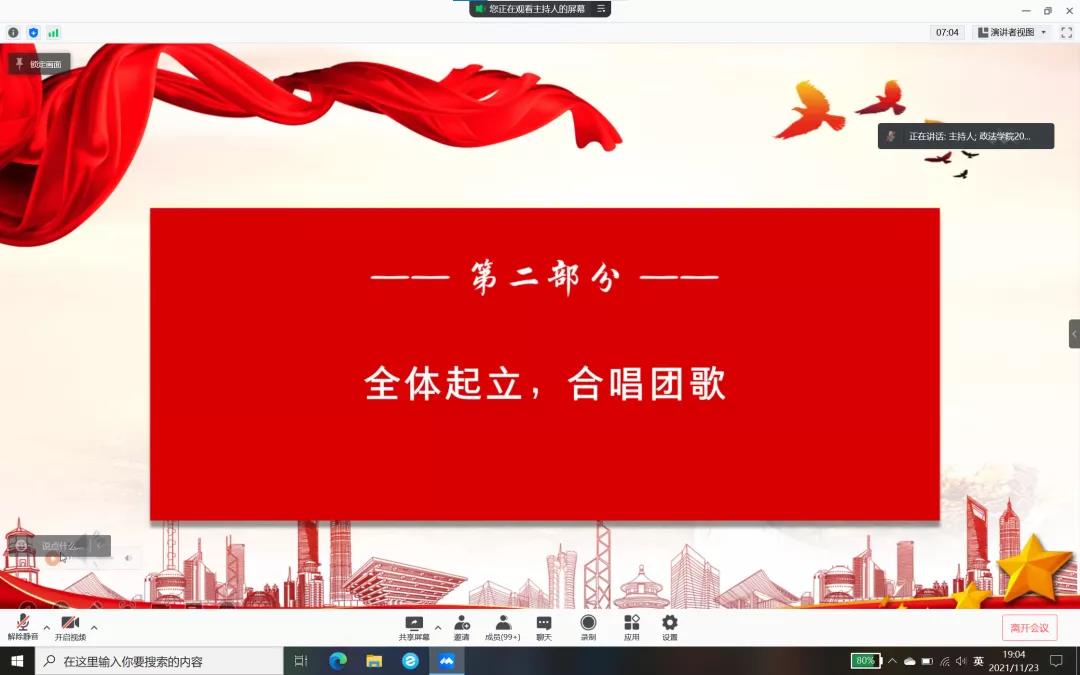 仪式第二项全体与会人员起立合唱中国共青团团歌。