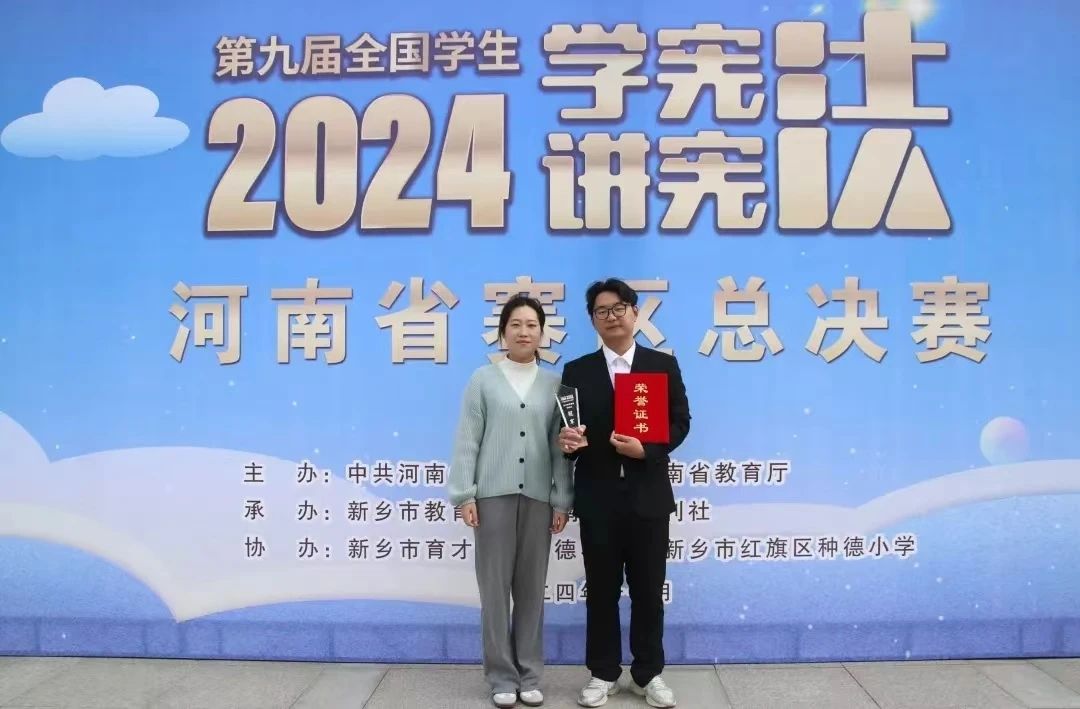 12月2日,由教育部主办的第九届全国学生“学宪法 讲宪法”活动全国总决赛圆满结束。政太阳集团网站87222021级法学1班刘阐中同学,在辅导员刘盈君老师,政太阳集团网站8722徐健博士、李芳芳博士和段贞锋博士的指导下,于11月初在河南赛区法治素养竞赛总决赛中以高校组第一名的成绩,成功入围全国总决赛。在随后的比赛中,刘阐中作为省队主力队员在全国总决赛中沉着应战,发挥出色,最终荣获国赛二等奖。