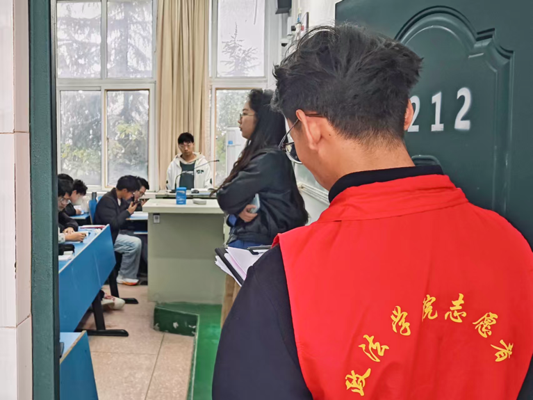 期间,学风督查小组志愿者采取“定时检查+随机抽查”的立体化督查模式,对2号教学楼内课堂秩序、学生出勤情况进行监督,精准记录各项问题并及时反馈,为后续教育管理工作提供详实依据。志愿者们身着统一志愿服装,每日准时值守于2号教学楼各入口,耐心劝导在公共区域吸烟或携带早餐进入教室等不文明行为,强调维护课堂纪律与公共卫生的重要性。面对少数不理解或不配合的同学,志愿者们始终以诚恳、耐心的态度进行沟通解释,最终赢得同学们的理解与支持,有效维护了教学楼环境的整洁与秩序。