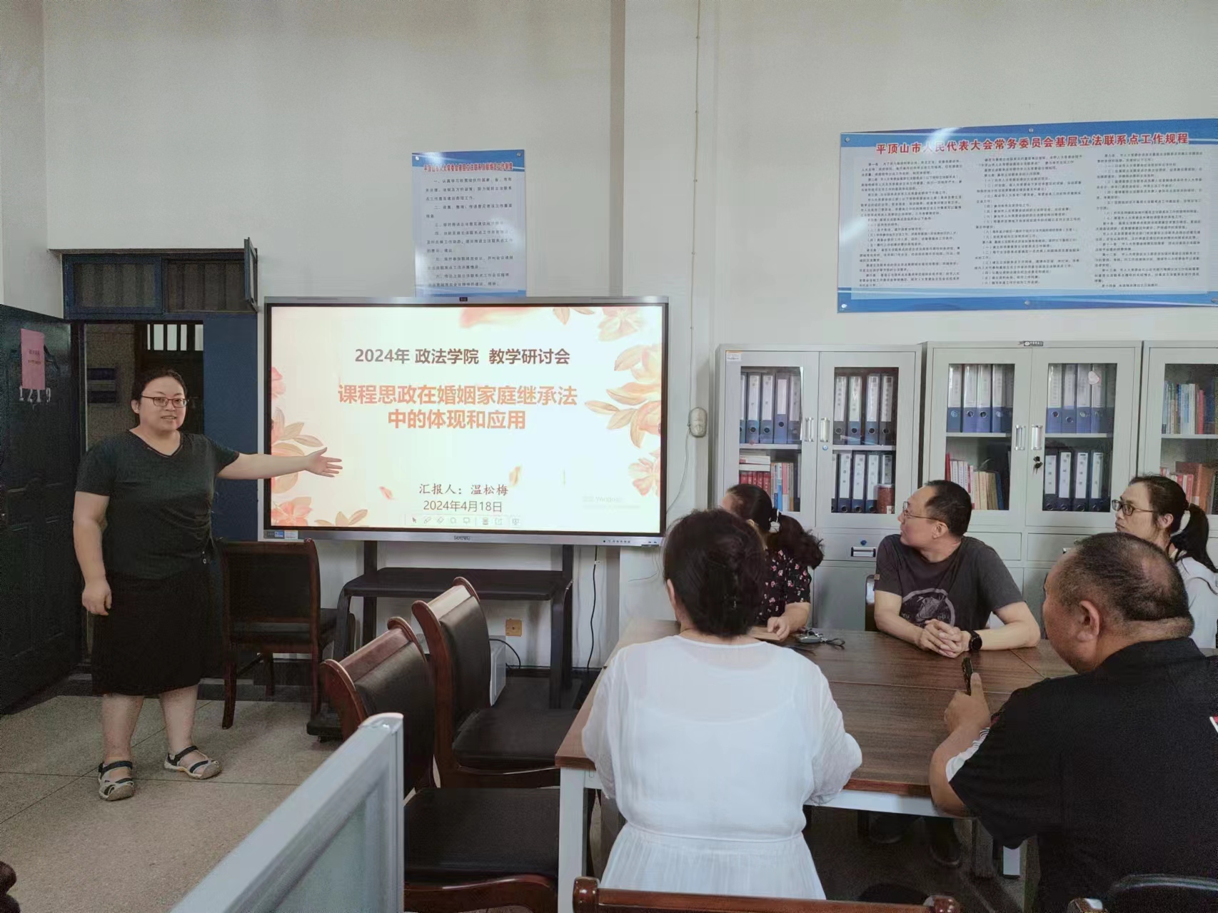 为推动课程思政建设,增强课程育人实效,政太阳集团网站8722于4月18日在1219举办“课程思政在《婚姻家庭继承法》中的体现和应用”主题教学研讨会。本次活动由政太阳集团网站8722民商法学教研室主任温松梅老师主讲,民商法学重点学科相关教师参与了此次教研活动。