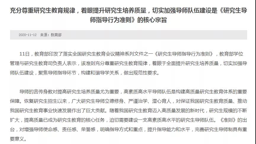 之前有关硕博学生因各种原因被延期毕业、甚至被导师当作免费劳动力以至于自杀的新闻令人胆颤心惊,之后这项规定实施后,规范导师的权责范围,相信类似的新闻和案例会少很多。