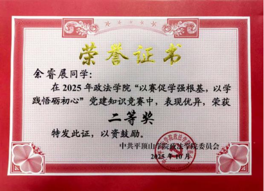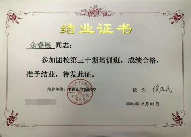 身兼双职,余睿展始终秉持“服务同学、奉献集体”的核心宗旨,以高度的责任感与高效的执行力推进各项工作。作为班级团支书,积极协助班主任开展班级管理、学风建设与活动组织工作,策划多场主题鲜明的团日活动与学习互助活动,搭建师生沟通的桥梁,增强班级凝聚力与向心力,助力班级获评2024-2025学年“先进班集体”。作为院系党务中心组织联络办公室学生干部,牵头梳理党员发展全流程,规范档案管理体系,统筹推进党员教育、组织生活开展等重点工作,优化工作流程、提升工作效率,切实保障院系党务工作规范有序运转,以扎实的工作成效赢得师生广泛认可。