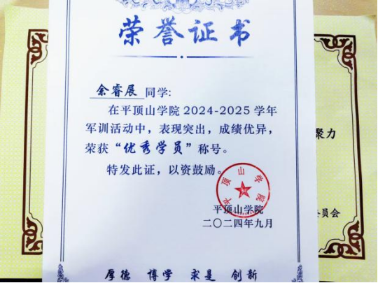 思想是行动的先导,该生始终将思想政治建设置于首位,以高标准筑牢信仰之基。其主动参与团课培训并通过“学习强国”等平台学习党的最新理论知识,深刻领悟“两个确立”的决定性意义,不断增强“四个意识”、坚定“四个自信”、做到“两个维护”。2024年军训期间,她获评“军训标兵”,同年,凭借优异的思想素养、突出的集体贡献,荣获“优秀团员”称号。作为班级团支书,她牵头组织各类主题学习活动,通过专家讲座、分组研讨、知识竞赛等多元形式,带动班级同学凝聚思想共识,让理论学习入脑入心,为班集体建设注入强大精神动力。