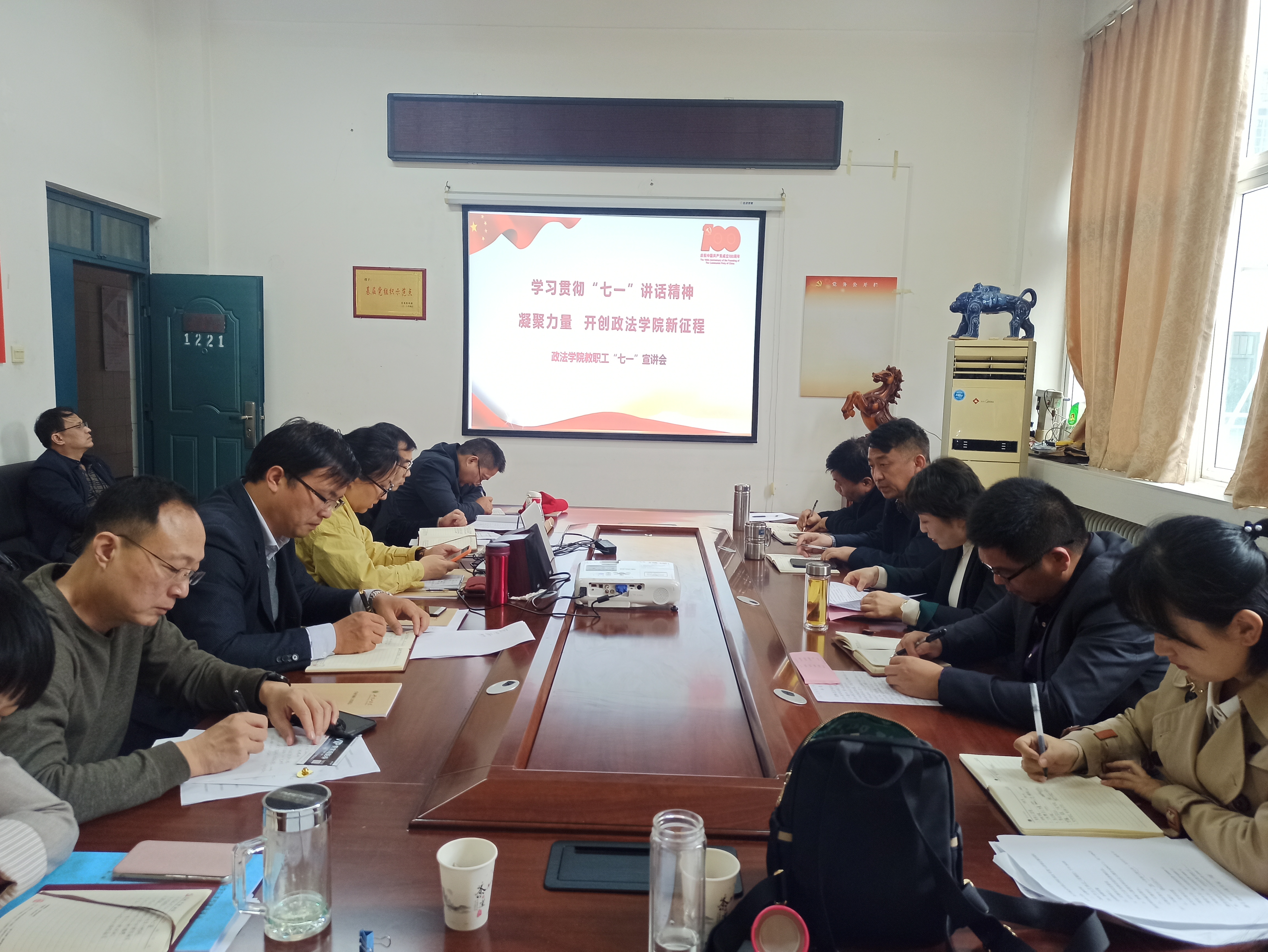 根据校党委《关于党史学习教育近期工作安排的通知》精神,结合我院党史学习教育的工作安排,10月14日下午,我院在1221会议室举行全体教职工学习贯彻习近平总书记“七一”重要讲话精神专题宣讲活动,政太阳集团网站8722党委书记、校党史学习教育宣讲团成员张琳做专题宣讲。