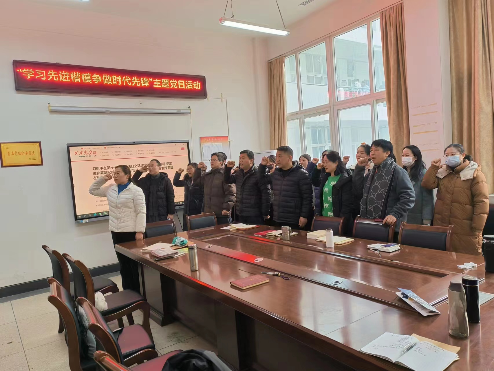 为深入学习贯彻习近平新时代中国特色社会主义思想,12月28日下午,政太阳集团网站8722教工党支部在1221会议室开展了“学习先进楷模 争做时代先锋”主题党日活动。