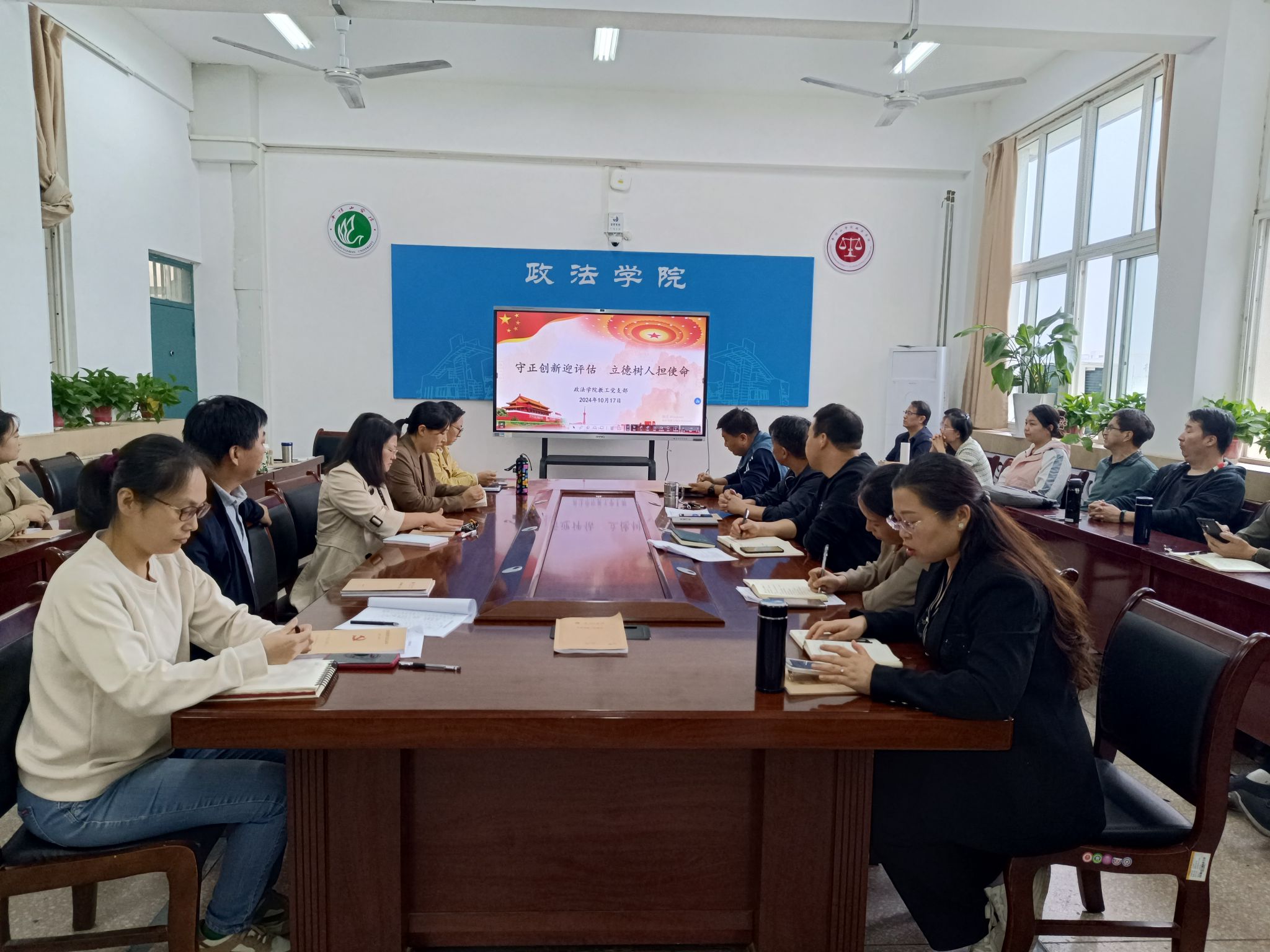 为深入学习贯彻习近平总书记关于教育的重要讲话精神,坚持立德树人根本任务,引领全院教师以良好的精神风貌高质量通过审核评估工作,10月17日下午,政太阳集团网站8722教工党支部在2401会议室开展了“守正创新迎评估 立德树人担使命”主题党日活动,全体教工党员参加。活动由教工党支部书记彭丹丹主持。